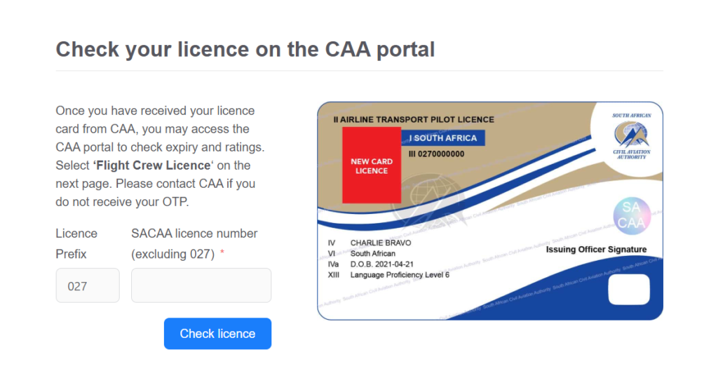 By using the link below you will be able to access and view your licensing information through the SACAA website.